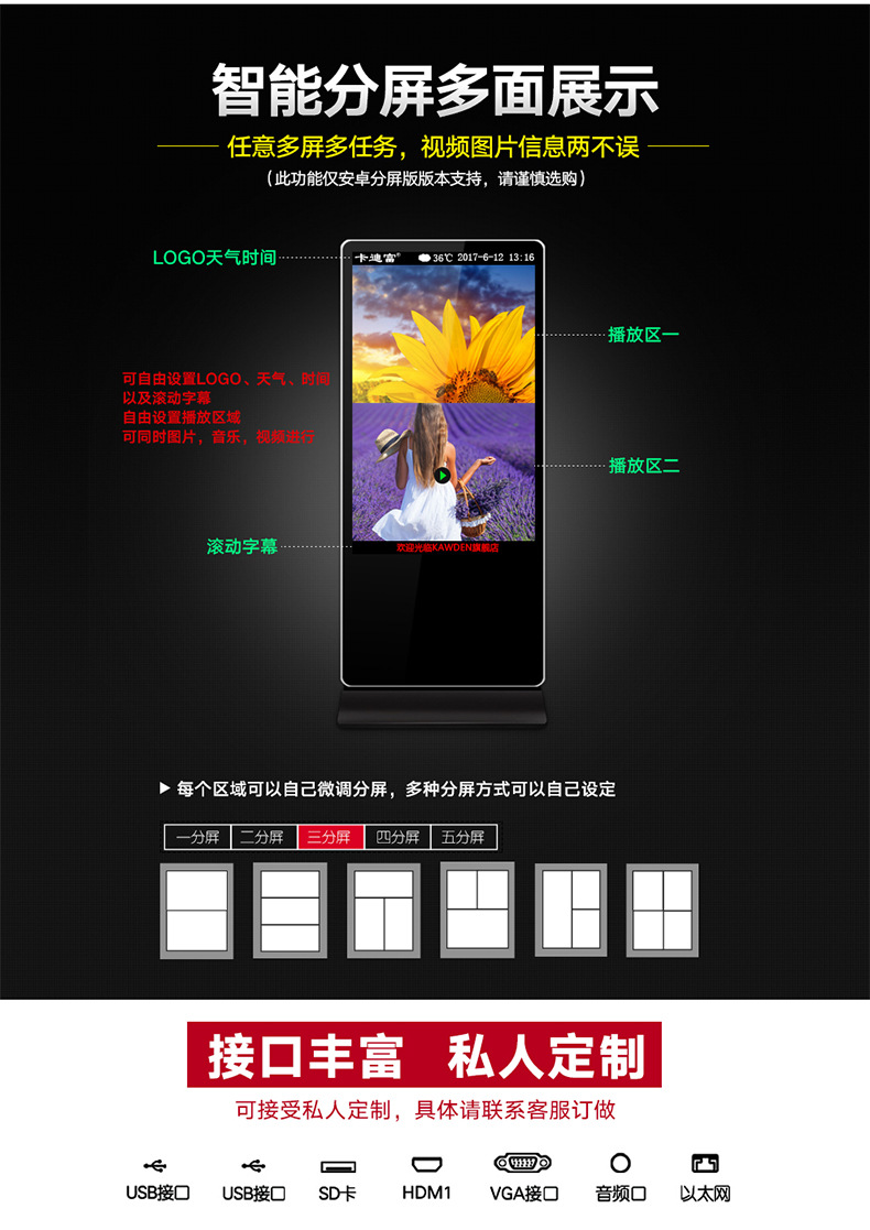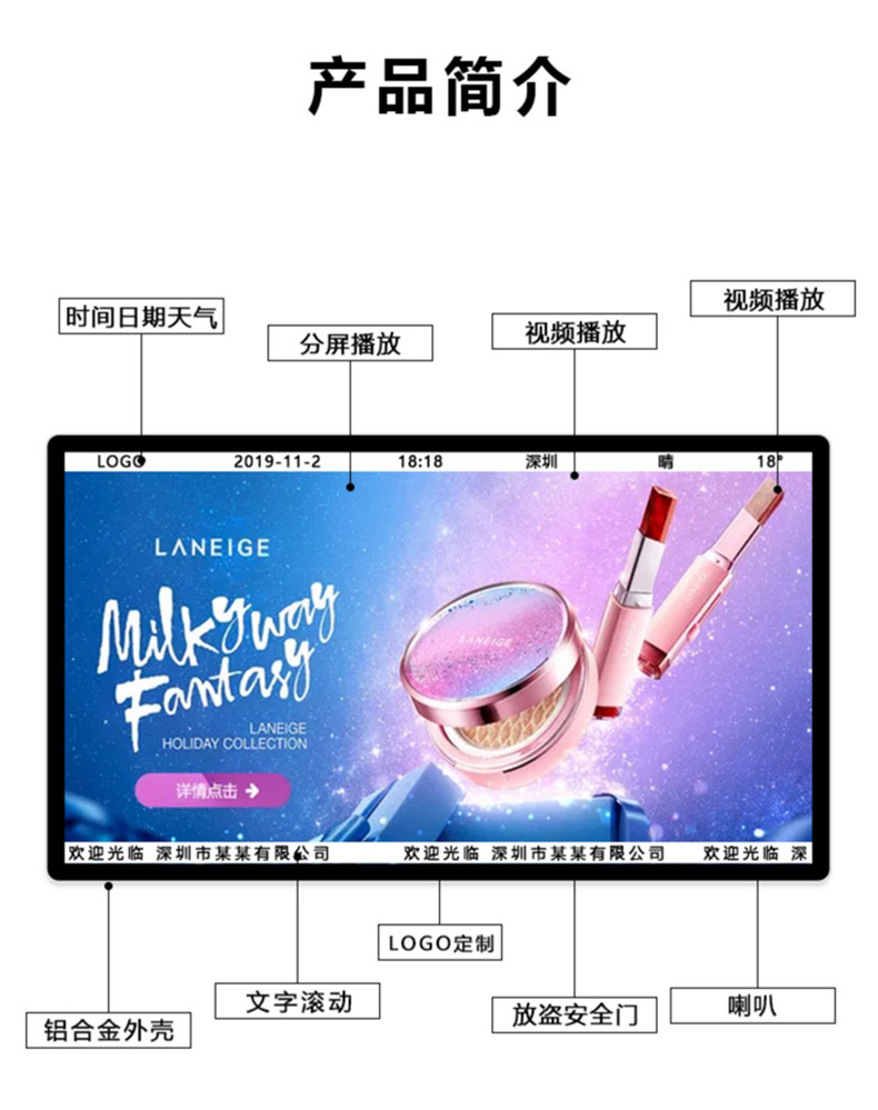 深圳市威碩科技有限公司抓住市場(chǎng)機(jī)遇,為國(guó)內(nèi)外零售業(yè)提供更優(yōu)質(zhì)的數(shù)字標(biāo)牌產(chǎn)品,不僅在外觀上進(jìn)行創(chuàng)新,更注重客戶對(duì)產(chǎn)品內(nèi)在的要求,以“互聯(lián)網(wǎng)+”思維創(chuàng)建本地化商品的銷(xiāo)售模式,為零售行業(yè)提供新的體驗(yàn)方式,提供更加有效的營(yíng)銷(xiāo)手段。